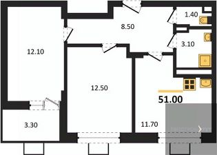 Квартира: 2 к 51,00 кв.м., 5 этаж в комплексе Ключи CLUB, 3 очередь, корп.3, сдача: 3кв. , этажей: 14, адрес Воронеж г., Остужева ул., д. 52/5, Застройщик: Новый код.