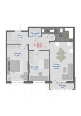 54 м2