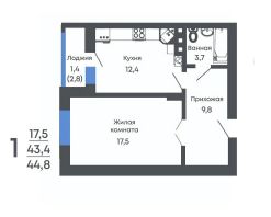 44 м2