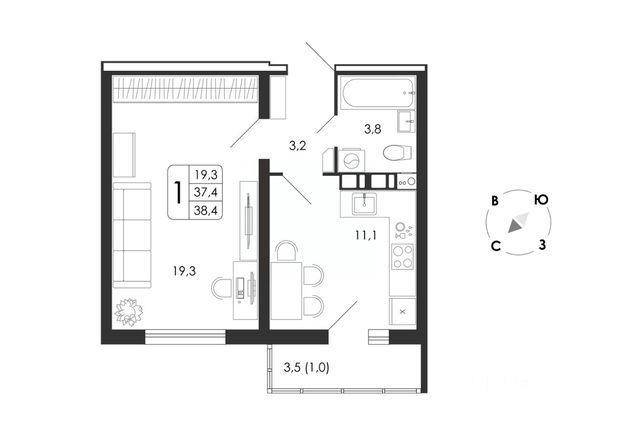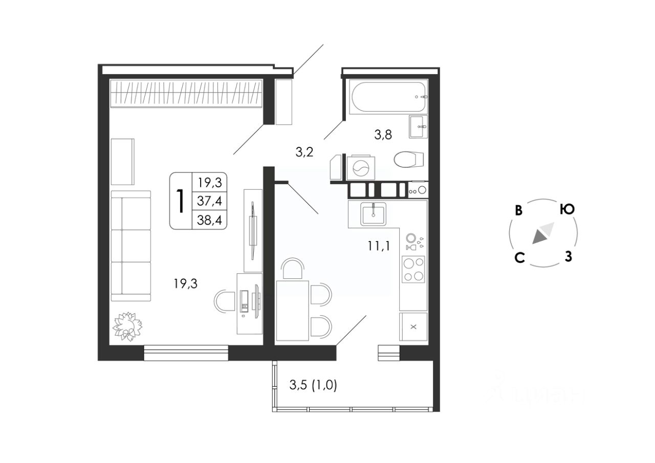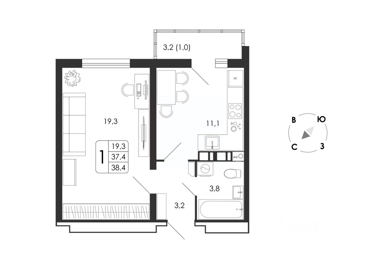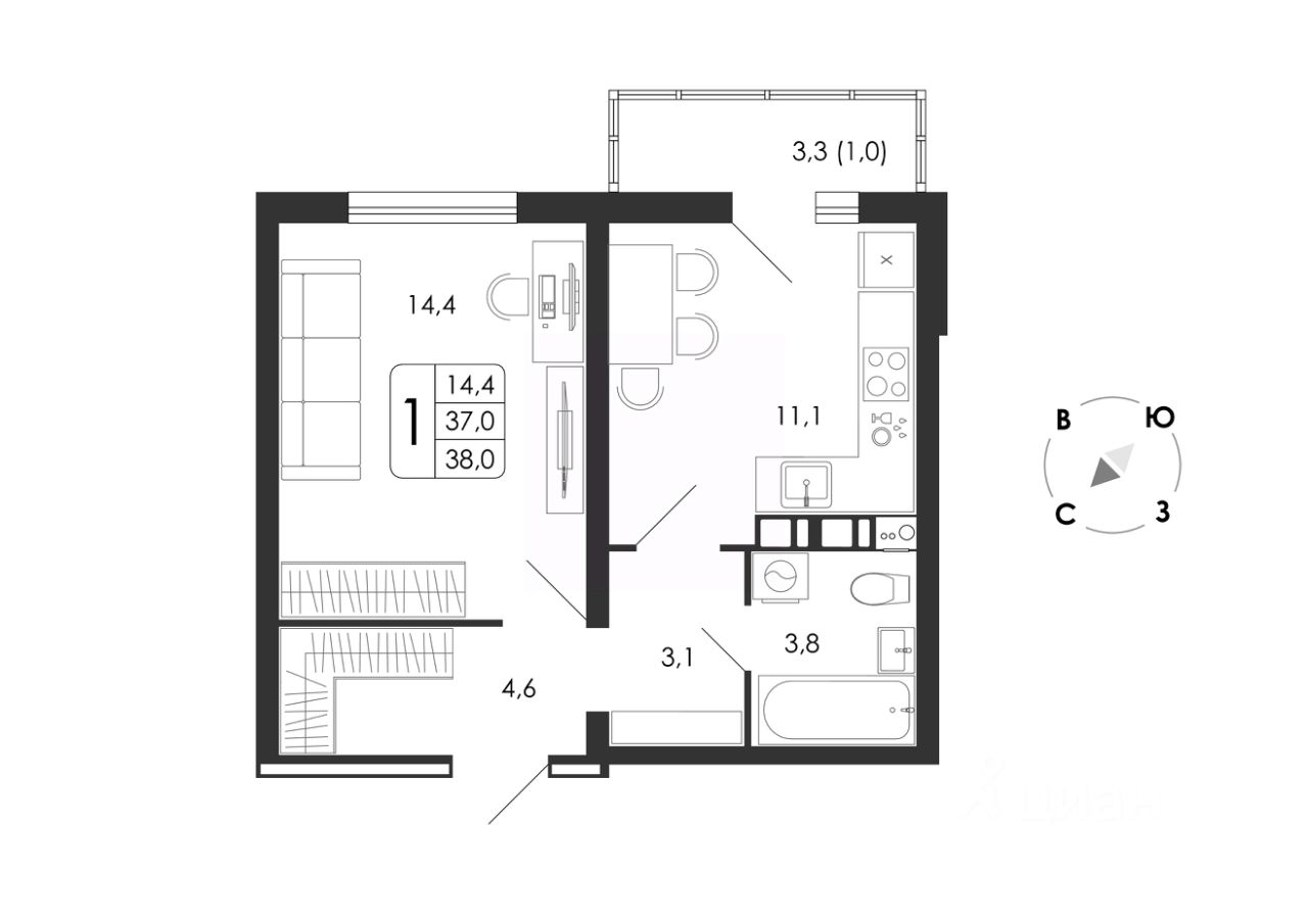 38 м² · Этаж 3 из 8