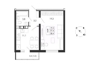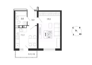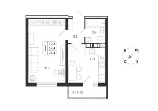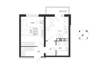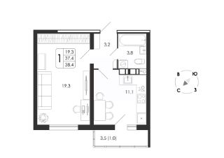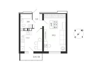 38 м2
