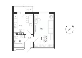 39 м2