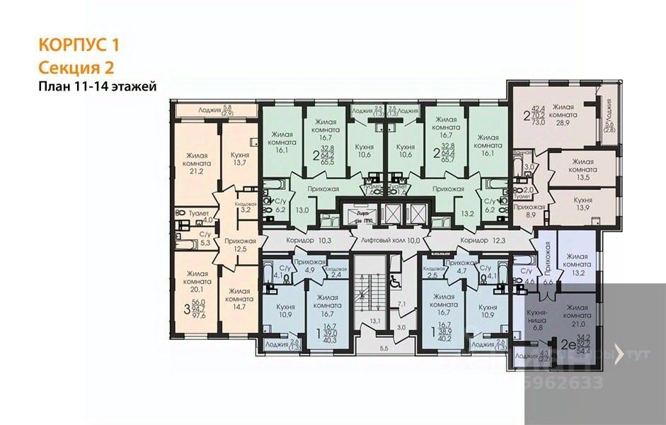 65 м² · Этаж 14 из 25