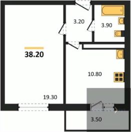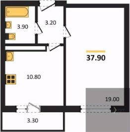 Квартира: 1 к 38,20 кв.м., 14 этаж в комплексе Озерки, 5 очередь, корп.38, сдача: 3кв. , этажей: 17, адрес Воронеж г., Ильюшина ул., , Застройщик: ВЫБОР.