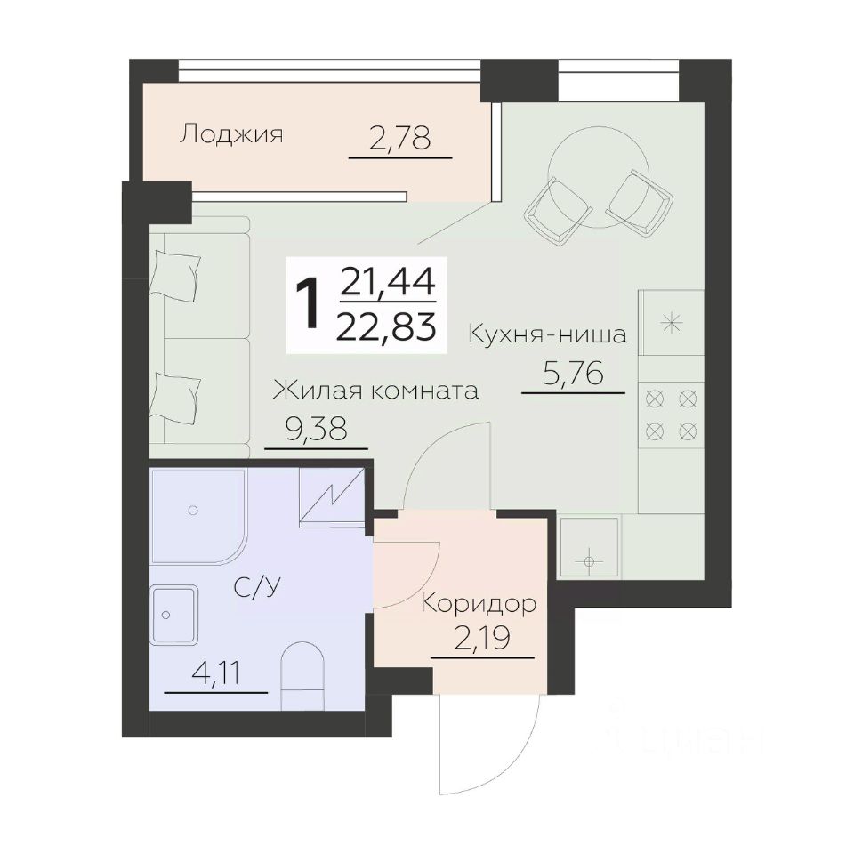22 м² · Этаж 11 из 17