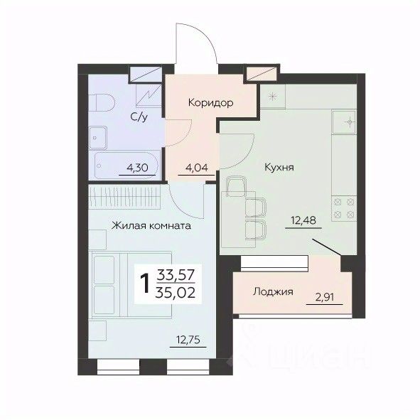 34 м² · Этаж 13 из 17