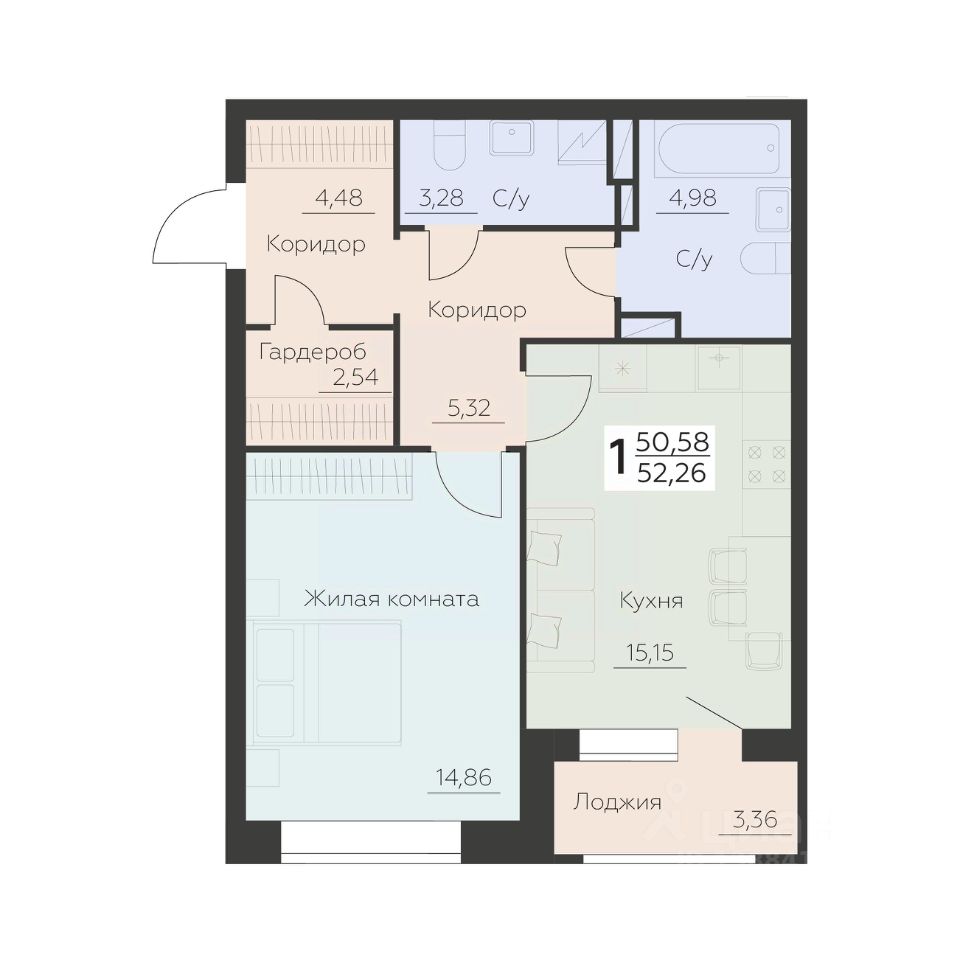52 м² · Этаж 3 из 16