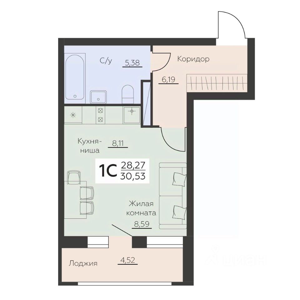 30 м² · Этаж 8 из 16