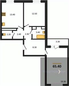 Квартира: 2 к 65,40 кв.м., 14 этаж в комплексе Озерки, 5 очередь, корп.38, сдача: 3кв. , этажей: 17, адрес Воронеж г., Ильюшина ул., , Застройщик: ВЫБОР.