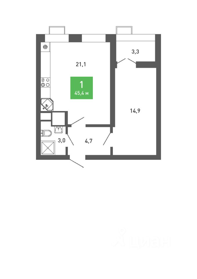 45 м² · Этаж 11 из 15