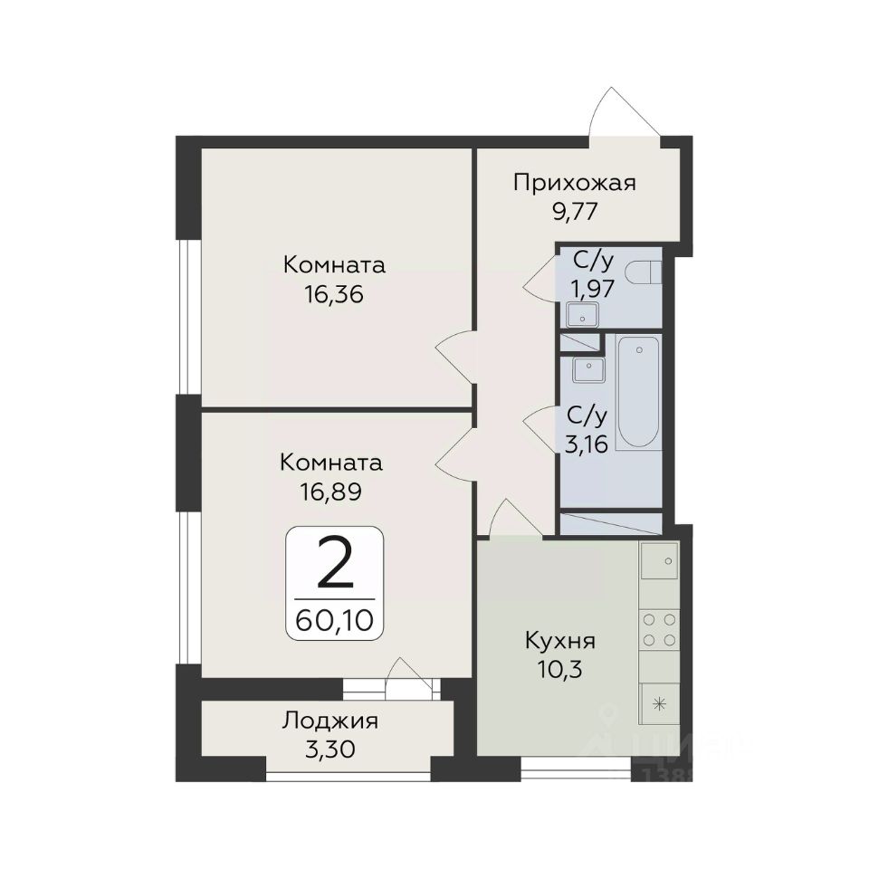 Продаётся 2-комнатная квартира в строящемся доме (Дом 1), срок сдачи: IV-кв. 2027, общей площадью 60.1 кв.м., на 6 этаже. Новый жилой комплекс от группы компаний ''Развитие'' расположен по адресу: г. Воронеж, по ул. пр-кт Труда.