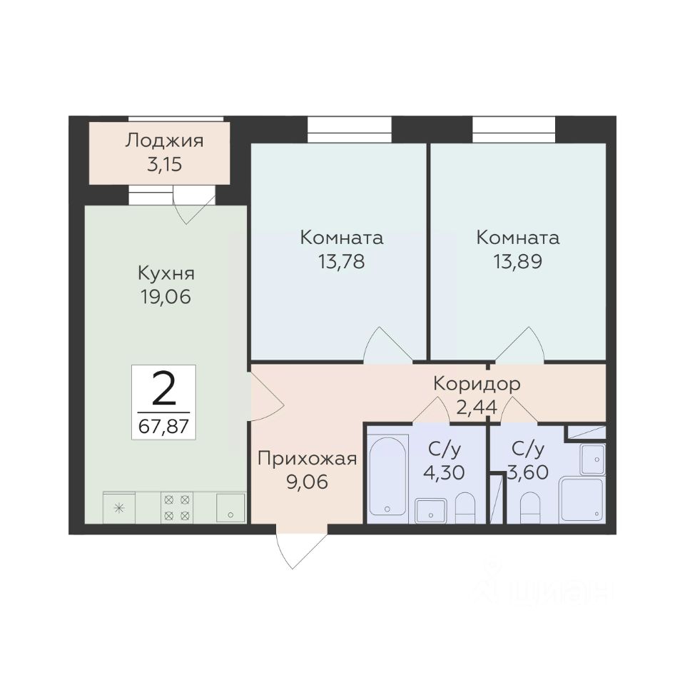 68 м² · Этаж 2 из 17