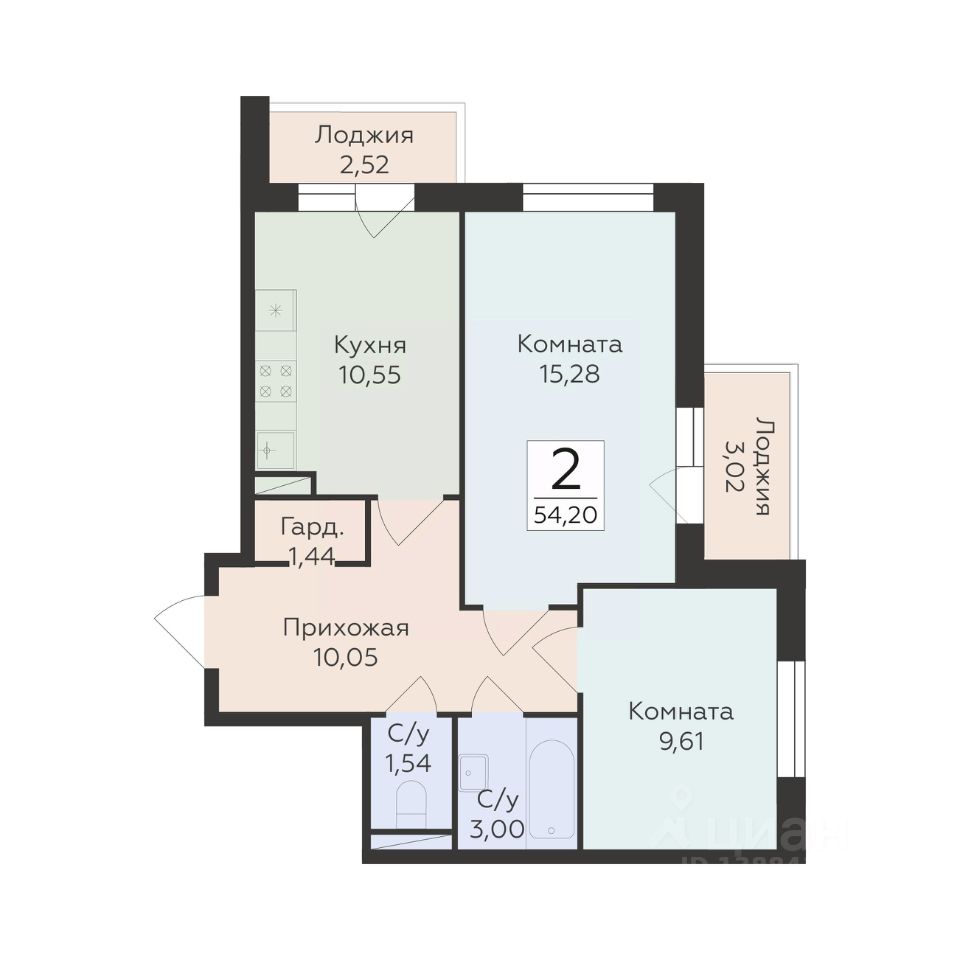 54 м² · Этаж 10 из 19