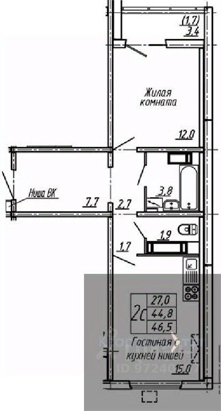 46 м² · Этаж 12 из 19