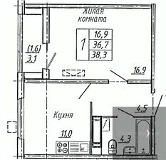 Квартира: 1 к 38,30 кв.м., 8 этаж в комплексе Яблоневые сады (ДСК), 1 очередь, корп.9, сдача: 2кв. , этажей: 19, адрес Воронеж г., Ломоносова ул., д. 129, Застройщик: ДСК.