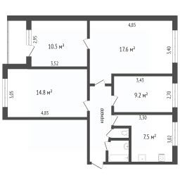 📚 Какая площадь четырёхкомнатных квартир?