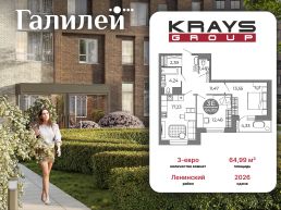 Квартира: 2 к 64,99 кв.м., 16 этаж в комплексе Галилей, 1 очередь, корп.2, сдача: 3кв. , этажей: 25, адрес Воронеж г., Кривошеина ул., д. 13/14, Застройщик: ГК Крайс.Квартиры расположены в ЖК, в 7 минутах езды от центра города в одном из самых развитых районов. Удобный выезд на улицу Ворошилова.В шаговой доступности расположены супермаркеты, торговые центры, детские сады, поликлиники, школы (также строится новая). Рядом много коммерции: супермаркет ''Лента'', аптека, пункт выдачи интернет-заказов. Планируется открытие фитнес-зала.На территории ЖК создан целый сад с десятками видов растений и разнообразным функционалом: зоны для прогулок, тихого отдыха, активных игр. Все 3 дома сдаются одновременно - поэтому на всей территории будет сад, а не стройплощадка.В ЖК есть ''сухой'' фонтан, расположенный на главной площади комплекса. Безопасный закрытый двор без машин с видеонаблюдением. Удобный наземный паркинг на территории. На всей территории комплекса безбарьерная среда.В ЖК действует детский досуговый центр. Здесь дети могут играть в специально оборудованной зоне или участвовать в развивающих занятиях с аниматорами.Дизайнерская отделка интерьера холла создаёт неповторимый антураж. В каждом подъезде оборудована комната-лапомойка для собак.Фасады ЖК исполнены стильной ''баварской'' кладкой кирпича с чередующимися оттенками. Большая часть квартир с отличным видом на город. Нелинейная посадка домов позволяет полностью избежать вида ''окна в окна''.В квартирах увеличенные окна с низкими подоконниками (высота 60 см), что делает их еще уютнее и светлее. Окна с повышенными шумоизоляционными свойствами. Эргономичные планировки квартир выполнена с учётом комфортной и логичной расстановки мебели популярных размеров.Квартиры в отделке White Box, что уже входит в стоимость. Ровная поверхность стен достигается шпатлевкой в 2 слоя. Стяжка и штукатурка в с/у. Эргономичная разводка электрики согласно дизайн-проекту.