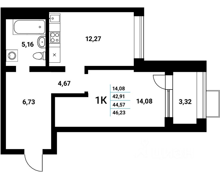 46 м² · Этаж 14 из 15