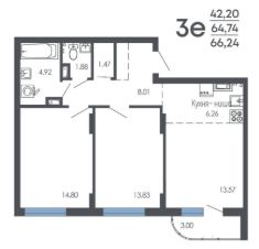 Продаётся 3-комнатная квартира в строящемся доме (Дом 1, дом 2), срок сдачи: I-кв. 2027, общей площадью 66.25 кв.м., на 4 этаже. Новый жилой комплекс от группы компаний ''Проект Инвест'' расположен по адресу: г. Воронеж, по ул. Шишкова.