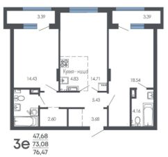 Продаётся 3-комнатная квартира в строящемся доме (Дом 1, дом 2), срок сдачи: I-кв. 2027, общей площадью 76.47 кв.м., на 5 этаже. Новый жилой комплекс от группы компаний ''Проект Инвест'' расположен по адресу: г. Воронеж, по ул. Шишкова.