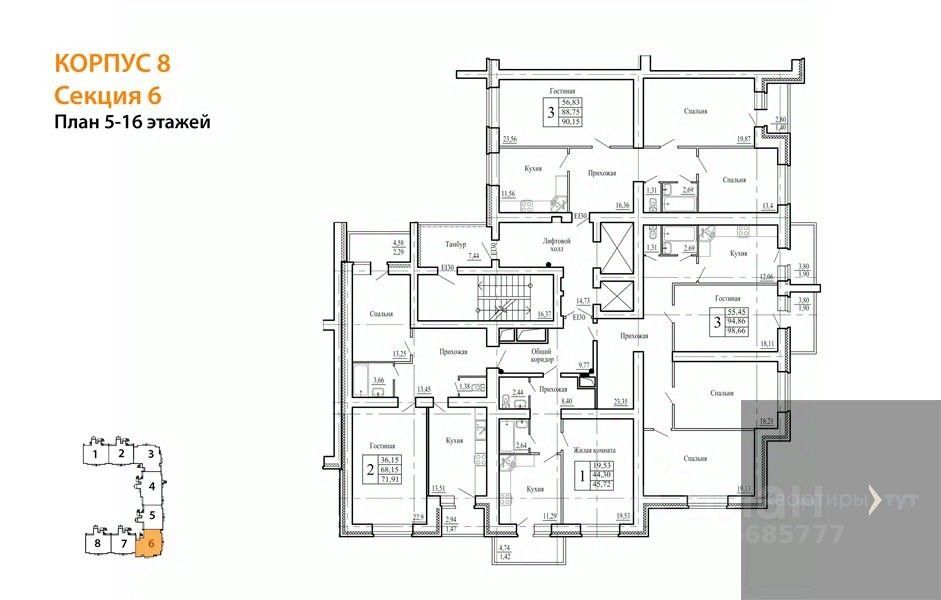 69 м² · Этаж 16 из 16