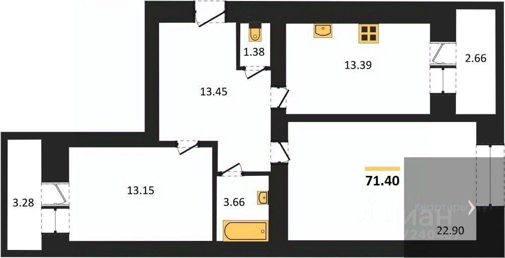 71 м² · Этаж 13 из 16