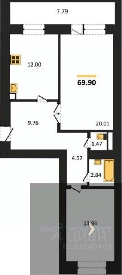 69 м² · Этаж 13 из 14
