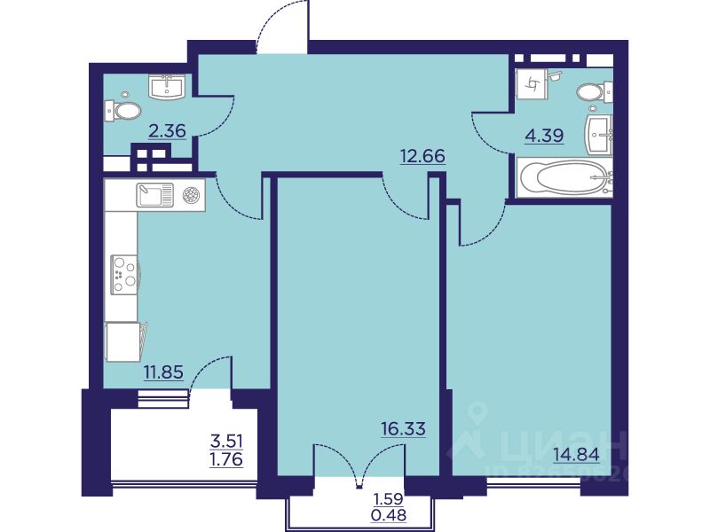 63 м² · Этаж 15 из 18