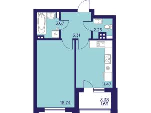 43 м2
