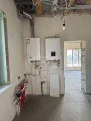 Продается новый дом, интересная, нестандартная планировка, три изолированные комнаты, два санузла, мастер- спальня!!!! Отделка полная : потолки натянуты, обои поклеены,, двери установлены, полы - частично плитка, частично -ламинат, санузлы в кафеле. Все коммуникации подведены. Дом расположен в самом центе села!!!
