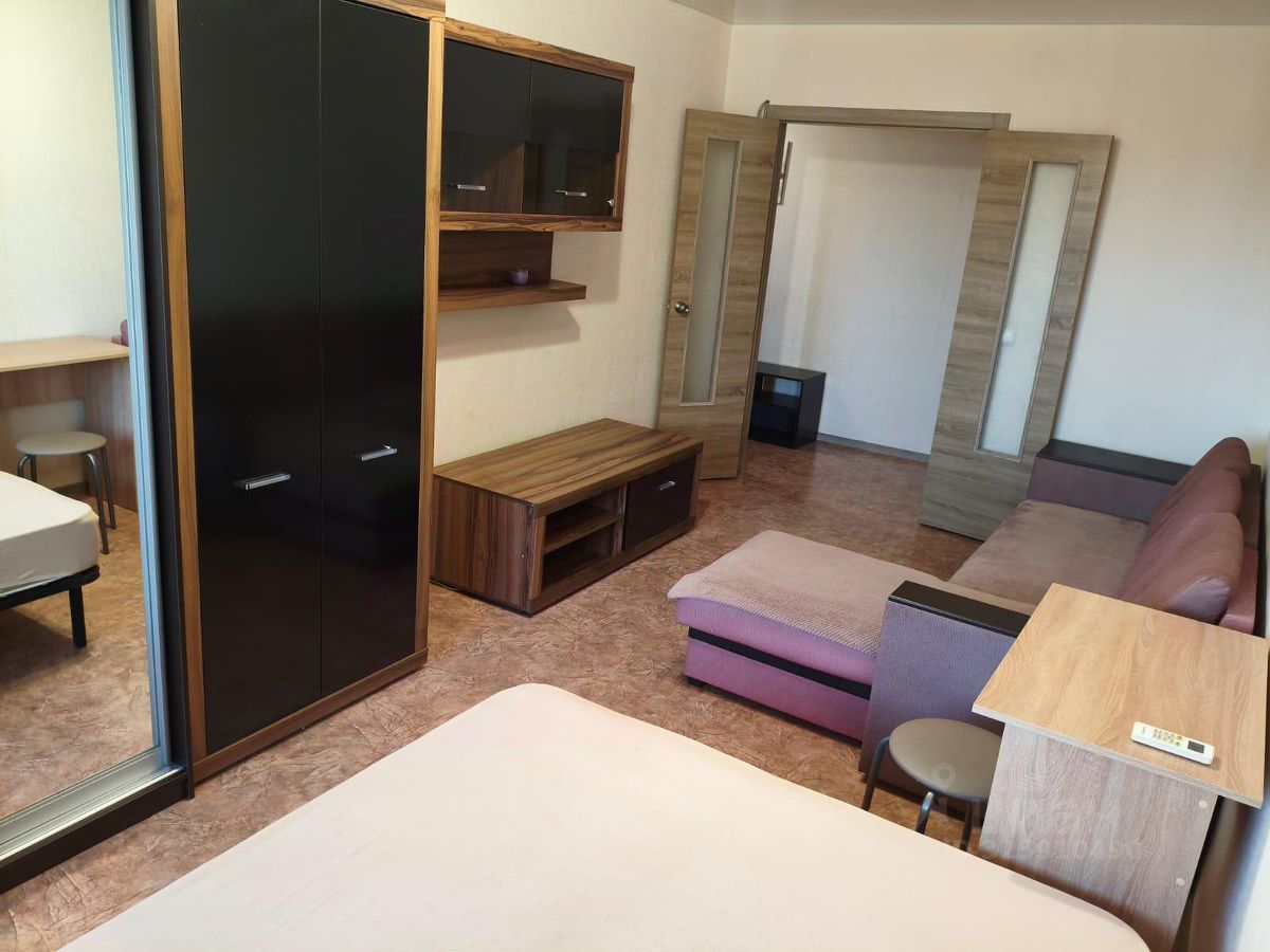 Сдаётся уютная квартира на длительный срок. Дом кирпичный, построен в 1956 году. В квартире выполнен дизайнерский ремонт, что создаёт атмосферу уюта и комфорта. В комнате установлен вместительный шкаф и удобный диван. Из мебели также имеется письменный стол и стул. В спальне предусмотрено три спальных места. Кухня оборудована всем необходимым: холодильник, плита, микроволновая печь и стиральная машина. Интерьер кухни стильный и современный, с ярким фартуком из плитки. Санузел совмещённый, оформлен в светлых тонах с акцентами в виде декоративных элементов. Балкон выходит на тихий двор, где предусмотрена открытая парковка. В квартире запрещено курение, но можно проживать с детьми. Животные не допускаются. Доступно кабельное/цифровое телевидение.