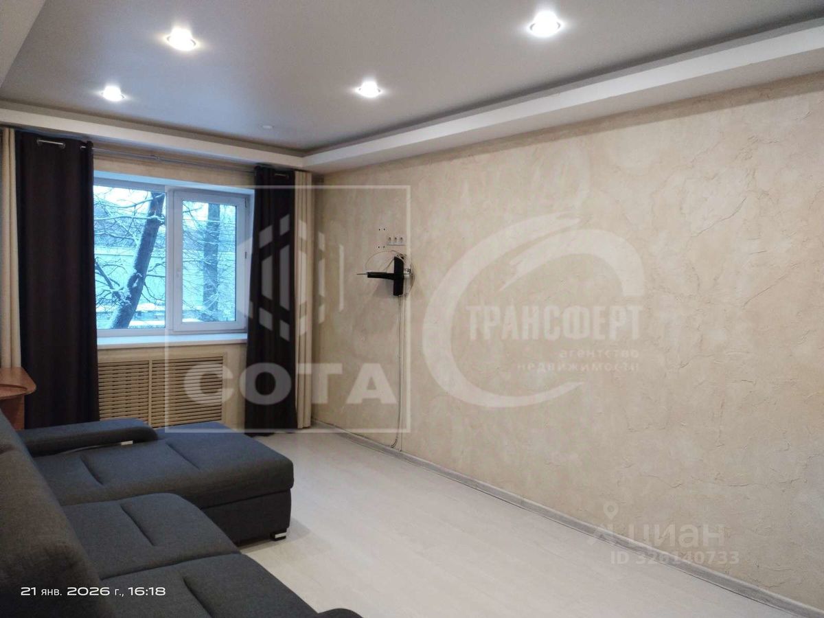 Сдаётся уютная квартира на длительный срок. Дом кирпичный, построен в 1956 году. В квартире выполнен дизайнерский ремонт, что создаёт атмосферу уюта и комфорта. В комнате установлен вместительный шкаф и удобный диван. Из мебели также имеется письменный стол и стул. В спальне предусмотрено три спальных места. Кухня оборудована всем необходимым: холодильник, плита, микроволновая печь и стиральная машина. Интерьер кухни стильный и современный, с ярким фартуком из плитки. Санузел совмещённый, оформлен в светлых тонах с акцентами в виде декоративных элементов. Балкон выходит на тихий двор, где предусмотрена открытая парковка. В квартире запрещено курение, но можно проживать с детьми. Животные не допускаются. Доступно кабельное/цифровое телевидение.