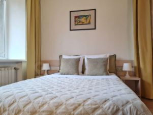 Сдаётся уютная квартира на длительный срок. Дом кирпичный, построен в 1956 году. В квартире выполнен дизайнерский ремонт, что создаёт атмосферу уюта и комфорта.В комнате установлен вместительный шкаф и удобный диван. Из мебели также имеется письменный стол и стул. В спальне предусмотрено три спальных места.Кухня оборудована всем необходимым: холодильник, плита, микроволновая печь и стиральная машина. Интерьер кухни стильный и современный, с ярким фартуком из плитки.Санузел совмещённый, оформлен в светлых тонах с акцентами в виде декоративных элементов.Балкон выходит на тихий двор, где предусмотрена открытая парковка. В квартире запрещено курение, но можно проживать с детьми. Животные не допускаются.Доступно кабельное/цифровое телевидение.Предоплата за 1 месяцЗалог 41 000 ₽