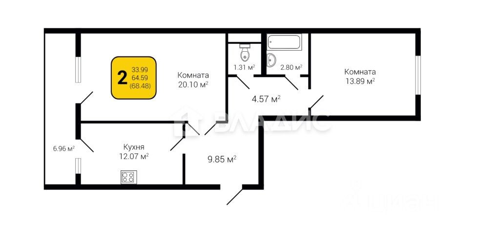 продам 2-к, Здоровья переулок, 90г/1 корп. 17 689 000 ₽