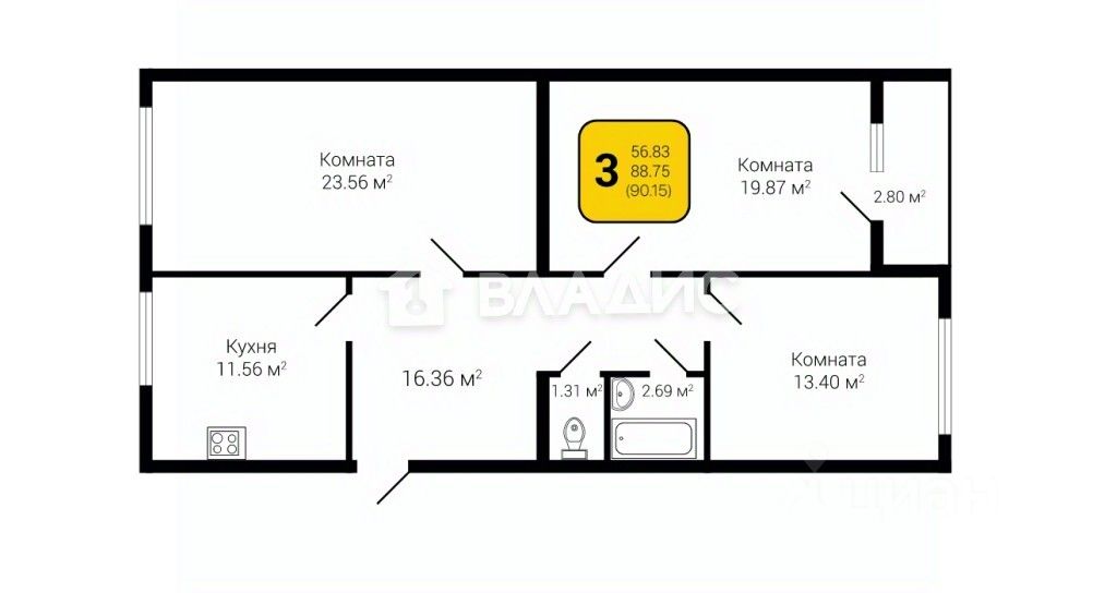 продам 3-к, Здоровья переулок, 90г/1 корп. 19 544 500 ₽