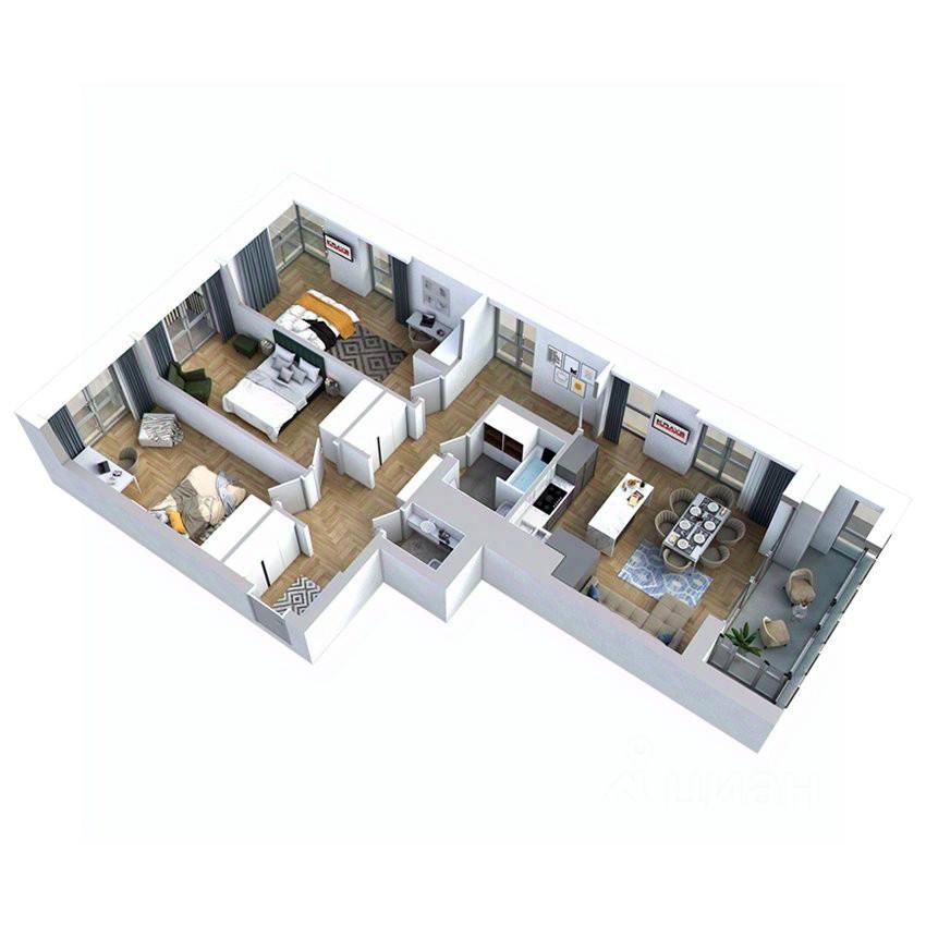 Светлая и просторная квартира с панорамными окнами на три стороны. Остекление выполнено в том числе в зоне прихожей и коридора, что создаёт дополнительное естественное освещение. Все помещения наполнены светом и просторны, при этом имеют рациональную площадь и форму, благодаря проработанному дизайн-проекту.