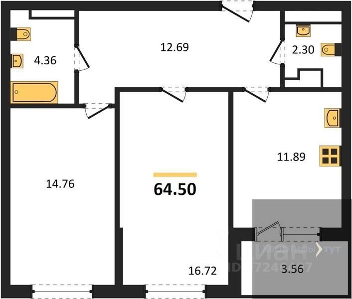 Общая площадь64,19 м2