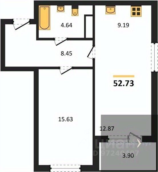 Общая площадь52,55 м2