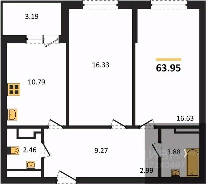 Общая площадь63,66 м2