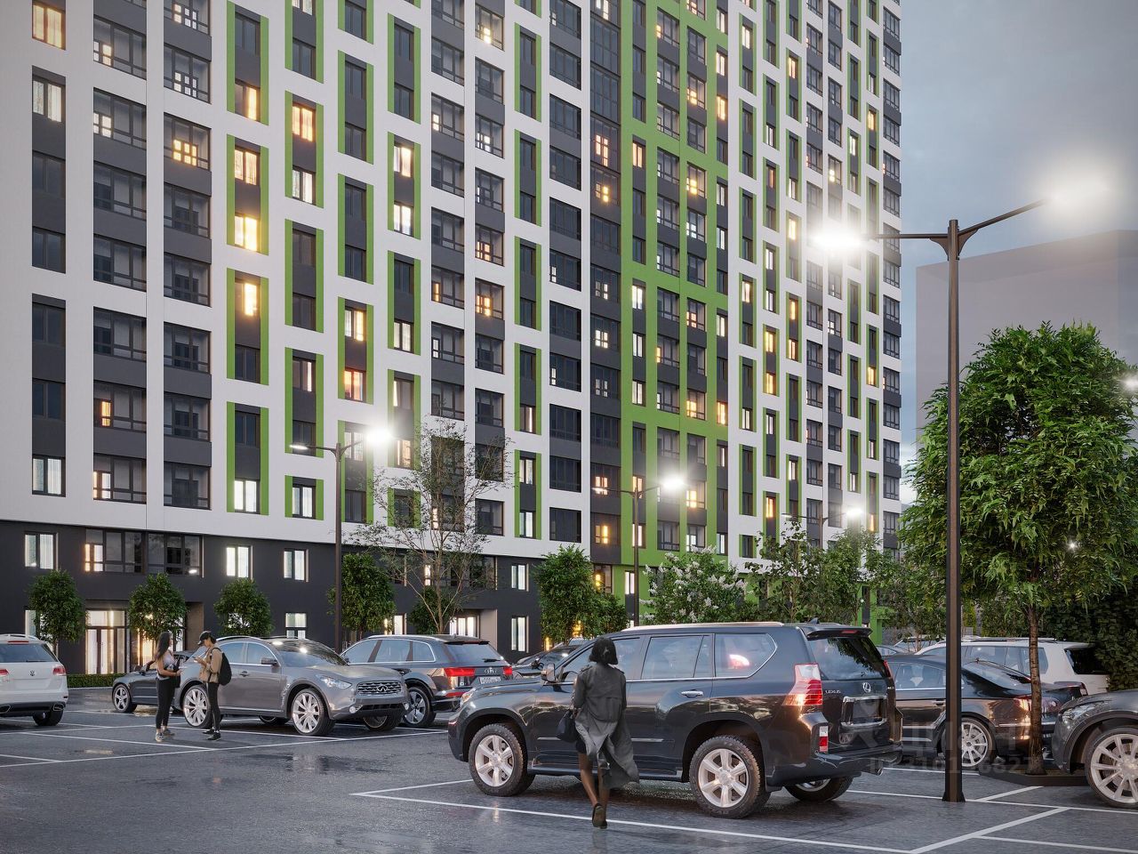 О ЖИЛОМ КОМПЛЕКСЕ В доме 27 этажей, он монолитно-кирпичный. На 1 этаже дома коммерческие помещения - там будут магазины, офисы и точки сферы услуг. Это дополнит существующую инфраструктуру.