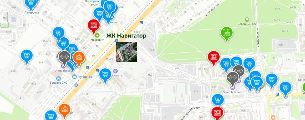 Жилой комплекс отличает спокойная атмосфера. Тем не менее все необходимое в пешей доступности : в 2 минутах ходьбы остановки общественного транспорта, сетевые магазины и парк ''Северный лес'' для прогулок с питомцами. В радиусе 1 километра 2 детских садика и лицей. Всего в 15 минутах езды на авто - река Дон. Во дворе оборудованы площадки для занятий физкультурой и для детских игр детей. Тротуары и дорожки выполнены с безопасным покрытием из вибропрессованной плитки. Уютное озеленение в виде газона, цветников-многолетников, деревьев и кустарников. Есть подземный паркинг для жителей на 62 машиноместа, а также гостевой паркинг по периметру дома.