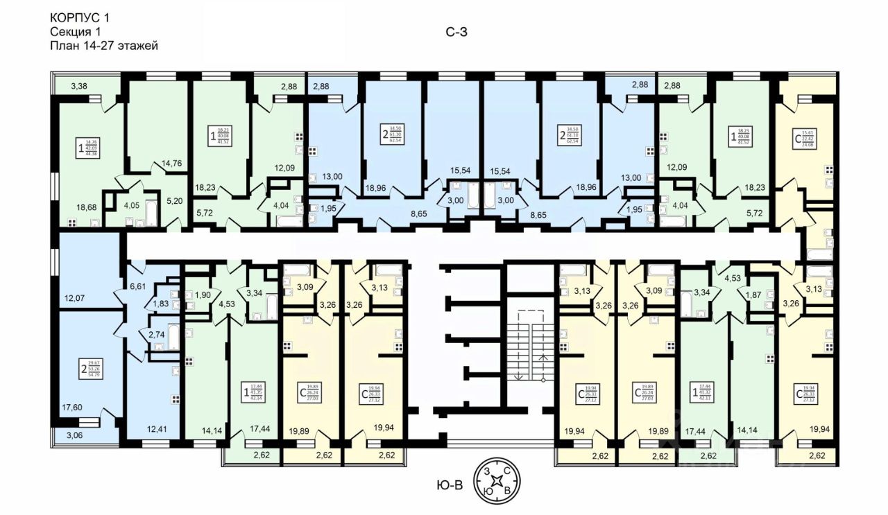 КВАРТИРЫ И ОТДЕЛКА ЖК Навигатор подойдет для молодых людей и семей. Планировки представлены студиями, 1К и 2К вариантами. Студии до 27 кв.м, 1-комнатные квартиры 41-42 кв.м, 2-комнатные квартиры 54-62 кв.м. Все планировки хорошо продуманы, симметричны, подходят для реализации классических дизайнерских решений. Во всех квартирах просторный балкон/лоджия.