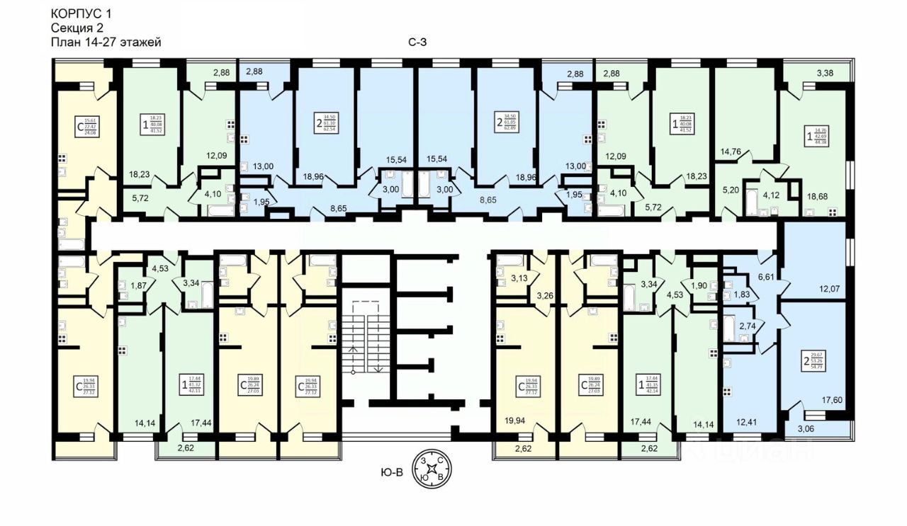КВАРТИРЫ И ОТДЕЛКА ЖК Навигатор подойдет для молодых людей и семей. Планировки представлены студиями, 1К и 2К вариантами. Студии до 27 кв.м, 1-комнатные квартиры 41-42 кв.м, 2-комнатные квартиры 54-62 кв.м. Все планировки хорошо продуманы, симметричны, подходят для реализации классических дизайнерских решений. Во всех квартирах просторный балкон/лоджия.