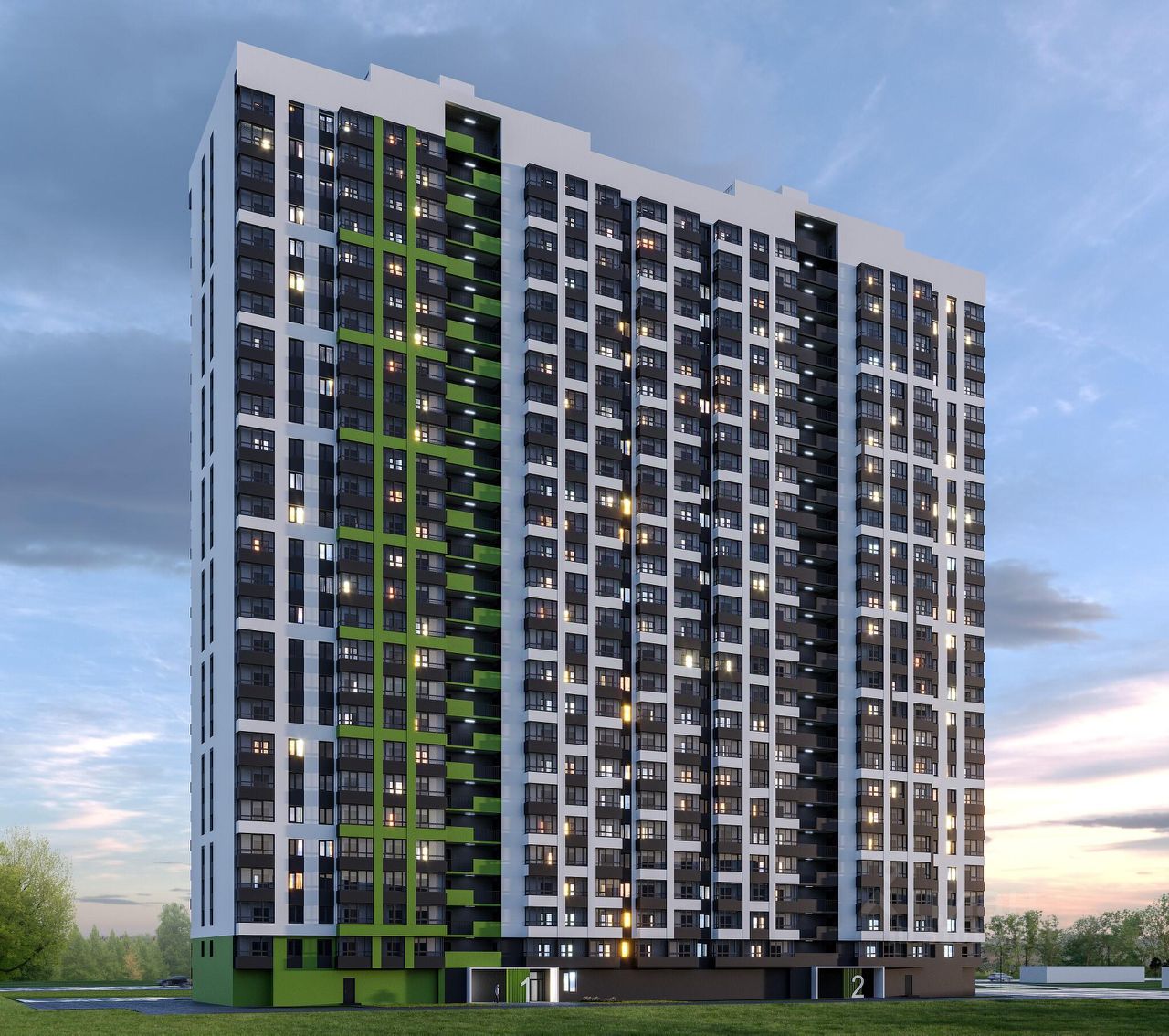 О ЖИЛОМ КОМПЛЕКСЕ В доме 27 этажей, он монолитно-кирпичный. На 1 этаже дома коммерческие помещения - там будут магазины, офисы и точки сферы услуг. Это дополнит существующую инфраструктуру.