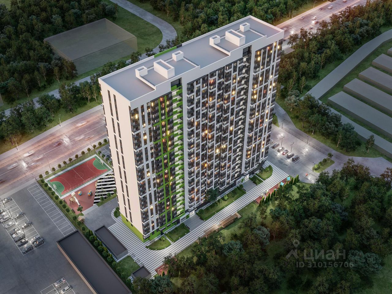 О ЖИЛОМ КОМПЛЕКСЕ В доме 27 этажей, он монолитно-кирпичный. На 1 этаже дома коммерческие помещения - там будут магазины, офисы и точки сферы услуг. Это дополнит существующую инфраструктуру.