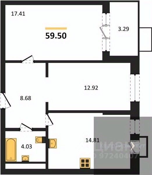 Общая площадь59,5 м2