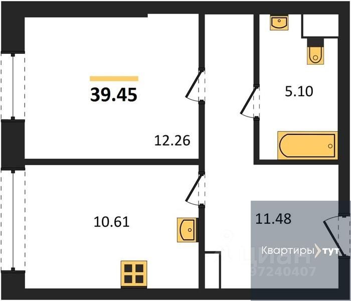 Общая площадь39,45 м2