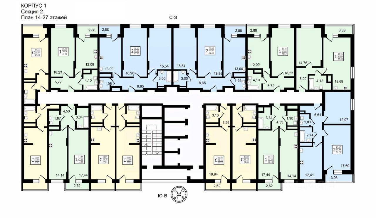 КВАРТИРЫ И ОТДЕЛКА ЖК Навигатор подойдет для молодых людей и семей. Планировки представлены студиями, 1К и 2К вариантами. Студии до 27 кв.м, 1-комнатные квартиры 41-42 кв.м, 2-комнатные квартиры 54-62 кв.м. Все планировки хорошо продуманы, симметричны, подходят для реализации классических дизайнерских решений. Во всех квартирах просторный балкон/лоджия.