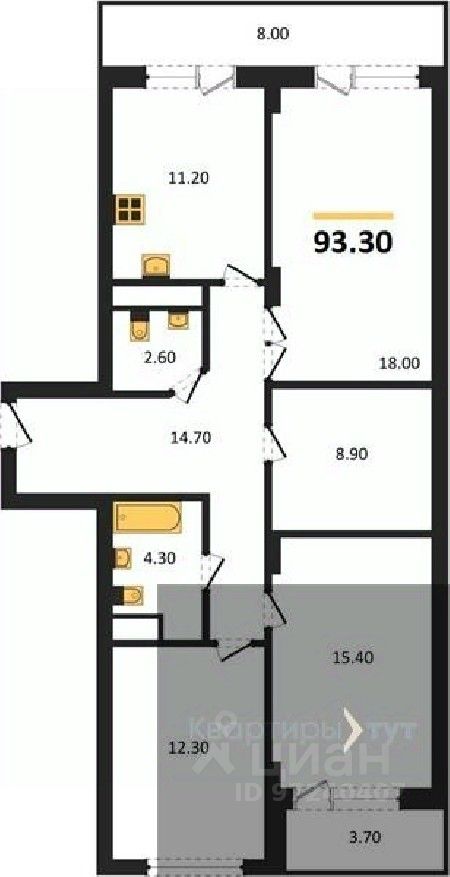 Общая площадь93,3 м2