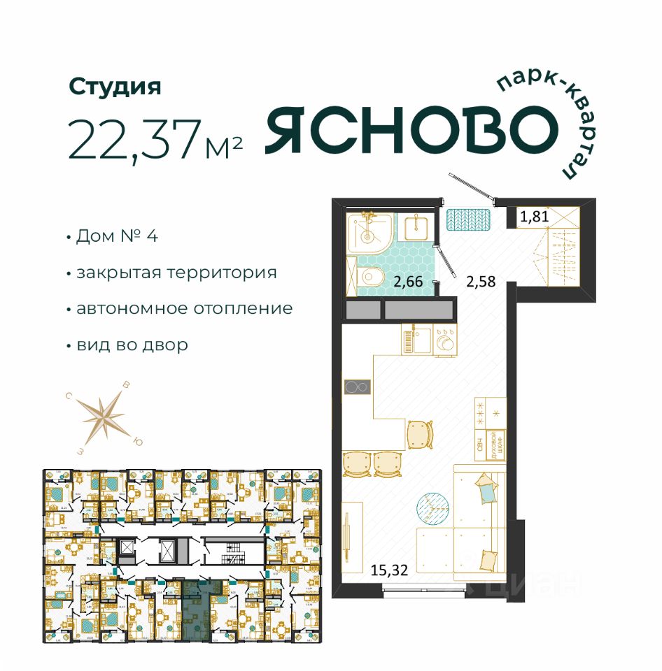 О жилом комплексе: — Зелёные аллеи и закрытые дворы без машин — Спортивные и детские площадки — Велодорожки, зоны для отдыха и прогулок — Современные входные группы и дизайнерские МОПы